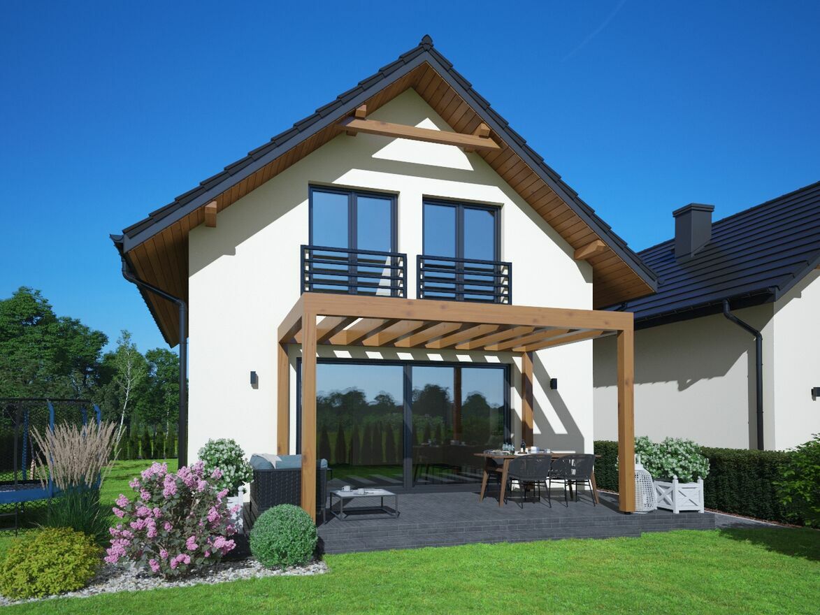 Pokrycie dachu: blacha na rąbek w kolorze antracytowym.