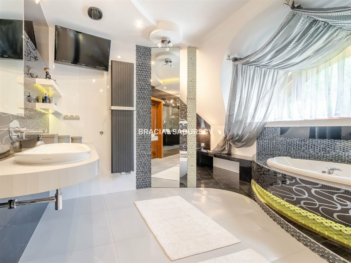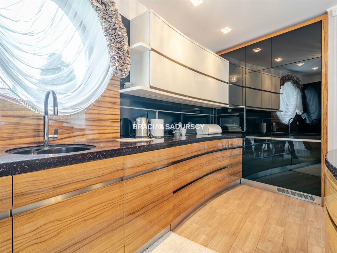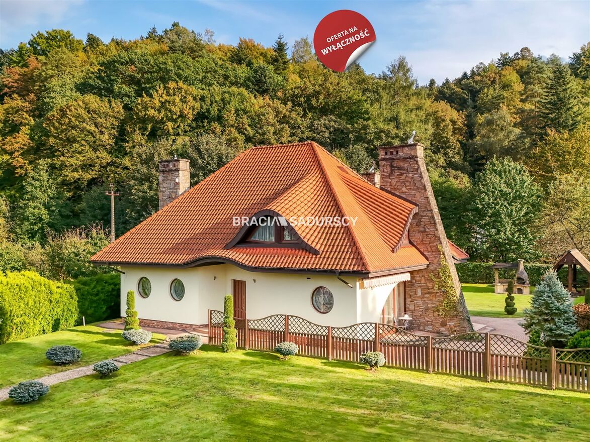 Na sprzedaż wyjątkowy dom wolnostojący o powierzchni ok. 200 m² , położony na pięknie zagospodarowanej działce o powierzchni ok. 1950 m² , w kameralnym i prestiżowym osiedlu domów jednorodzinnych w Myślenicach - Zarabiu blisko las i dużo zieleni.